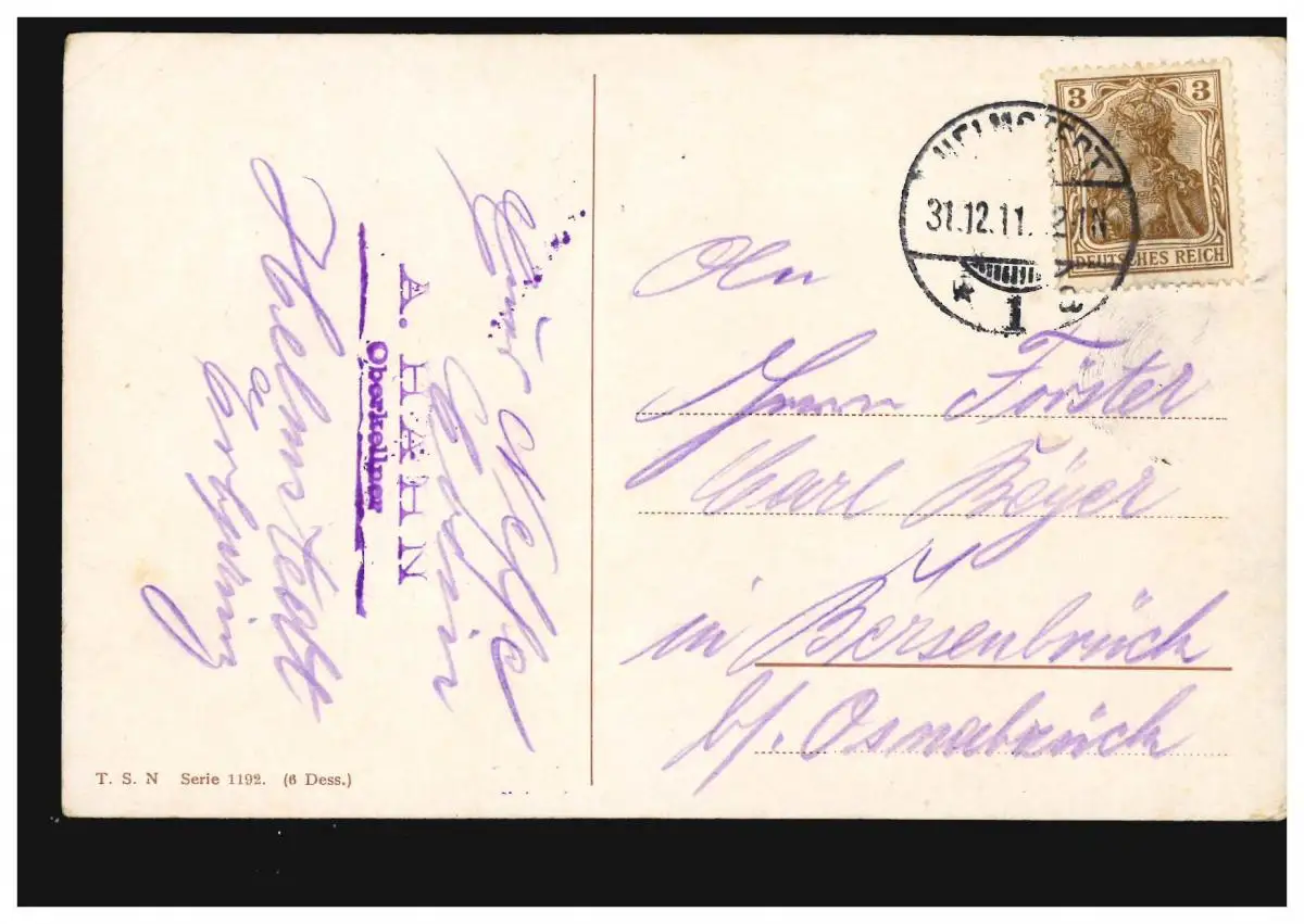 Carte de vue Nouvel An Winterwald Harnais transport de bois, HEIMSTEDT 31.12.11