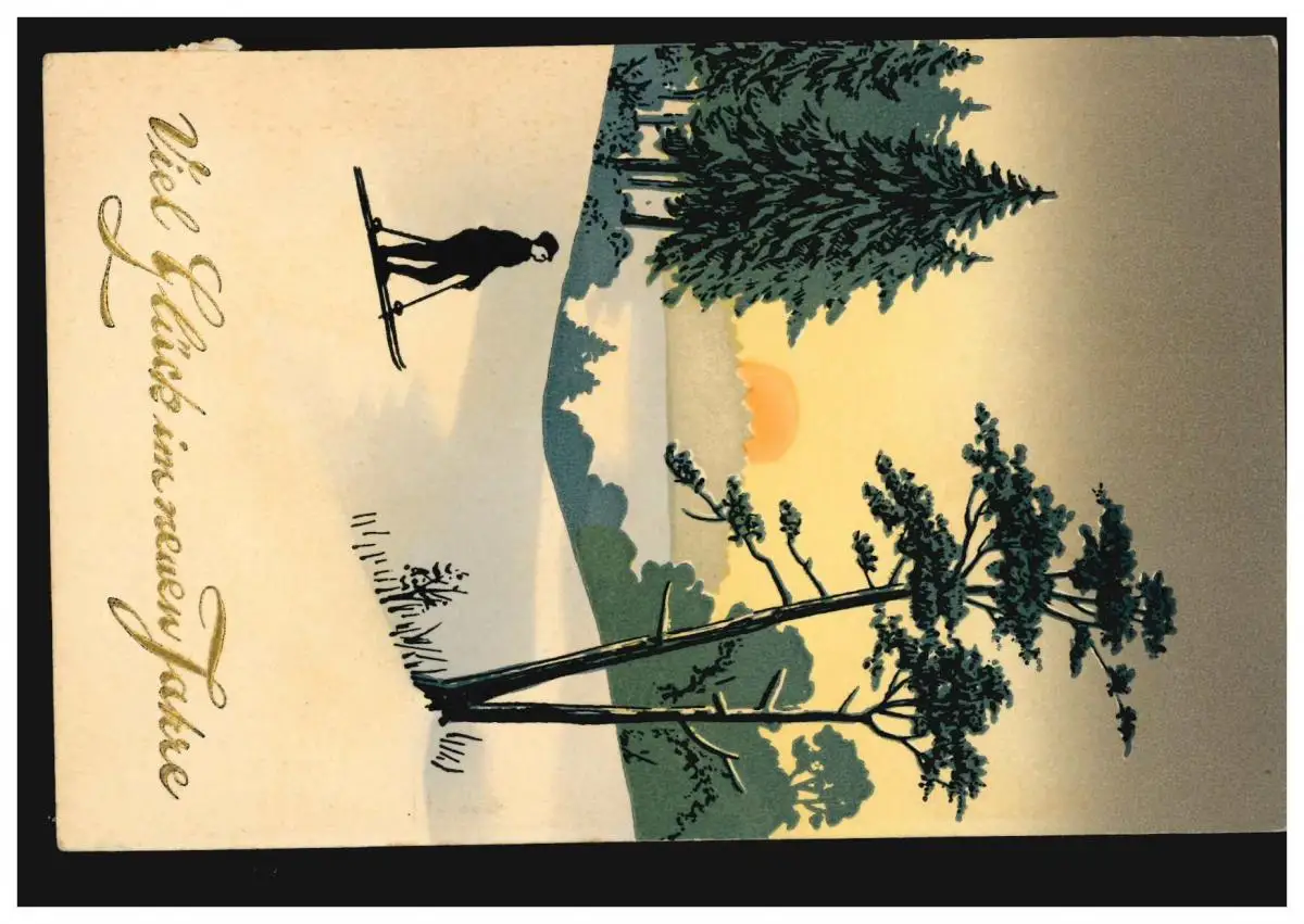 Carte de vue Nouvel An skieurs en hiver, AHLTEN chez ENSEIGNER 3.12.1928