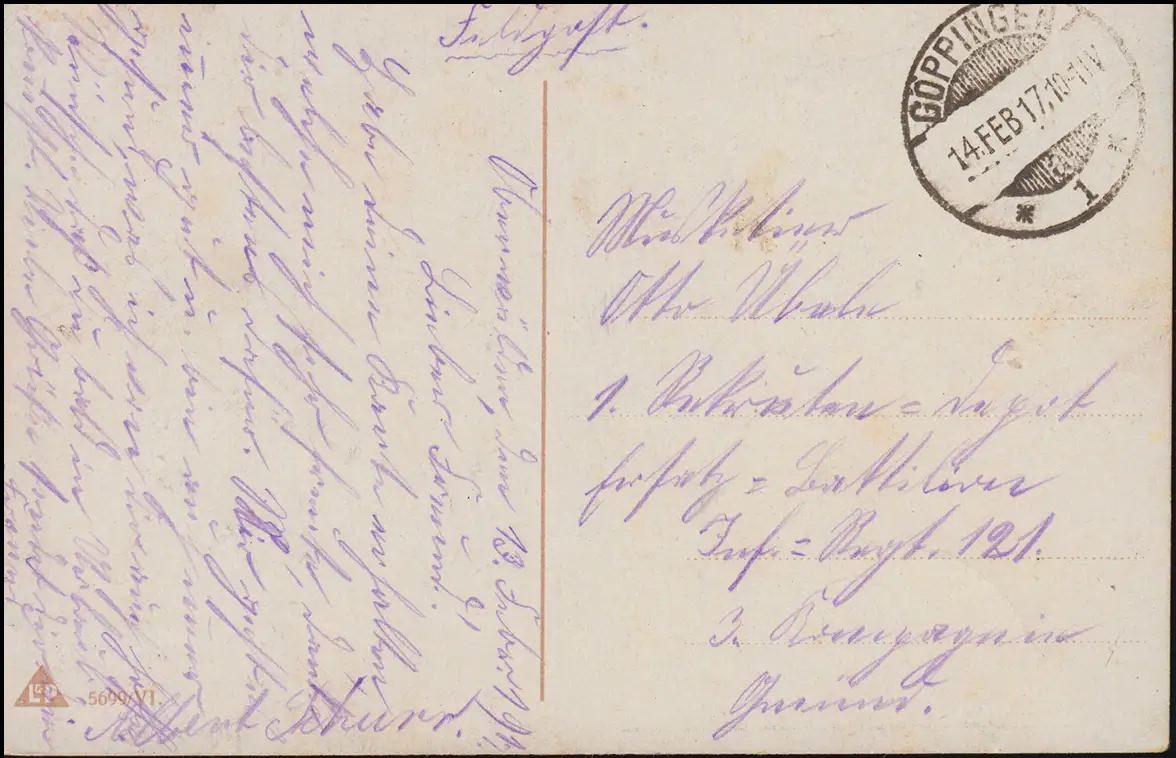Carte de vue Poème Le soleil a coulé dans l'ouest baiser de départ, GÖPPINGEN 14.2.17