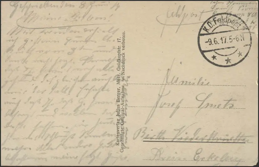 Carte de vue Post Arry, Pagny, 9.6.17 par Birth/Niederkraften