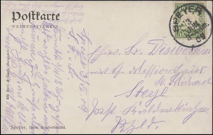 Carte de vue Speyer - Dom / évêque-stuhl, EF 5 Pf. Wappen SPEYER 3.6.09