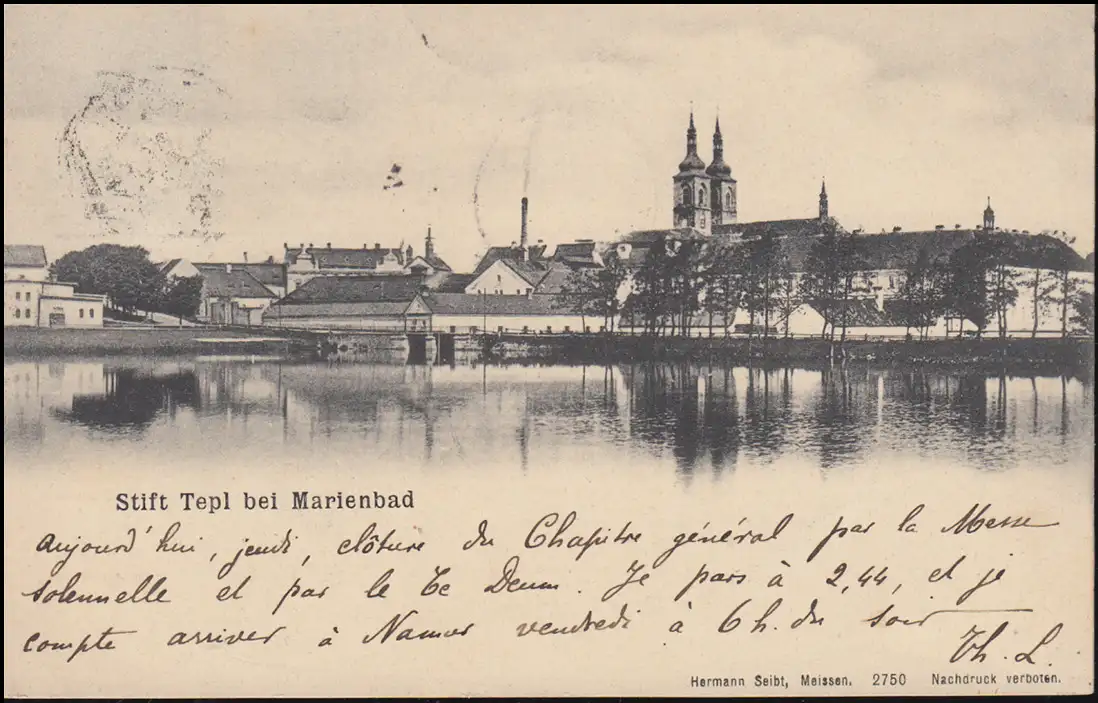 Carte de vue Stylo Tepl à Marienbad, 22.5.1914 selon Namur (STATION) 22.5.14