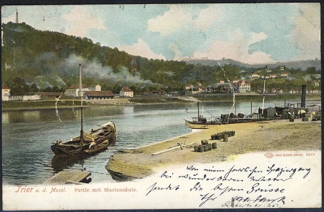 Carte de vue Trèves/Mosel: partie avec colonne de Marie Trine 13.8.07 vers Elberfeld