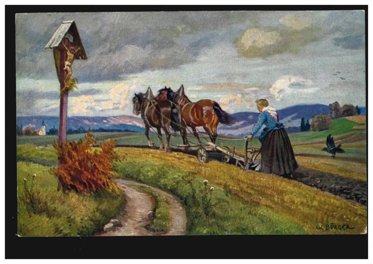 Carte de vue agricole W. Citoyens: La femme à la charrue, inutile