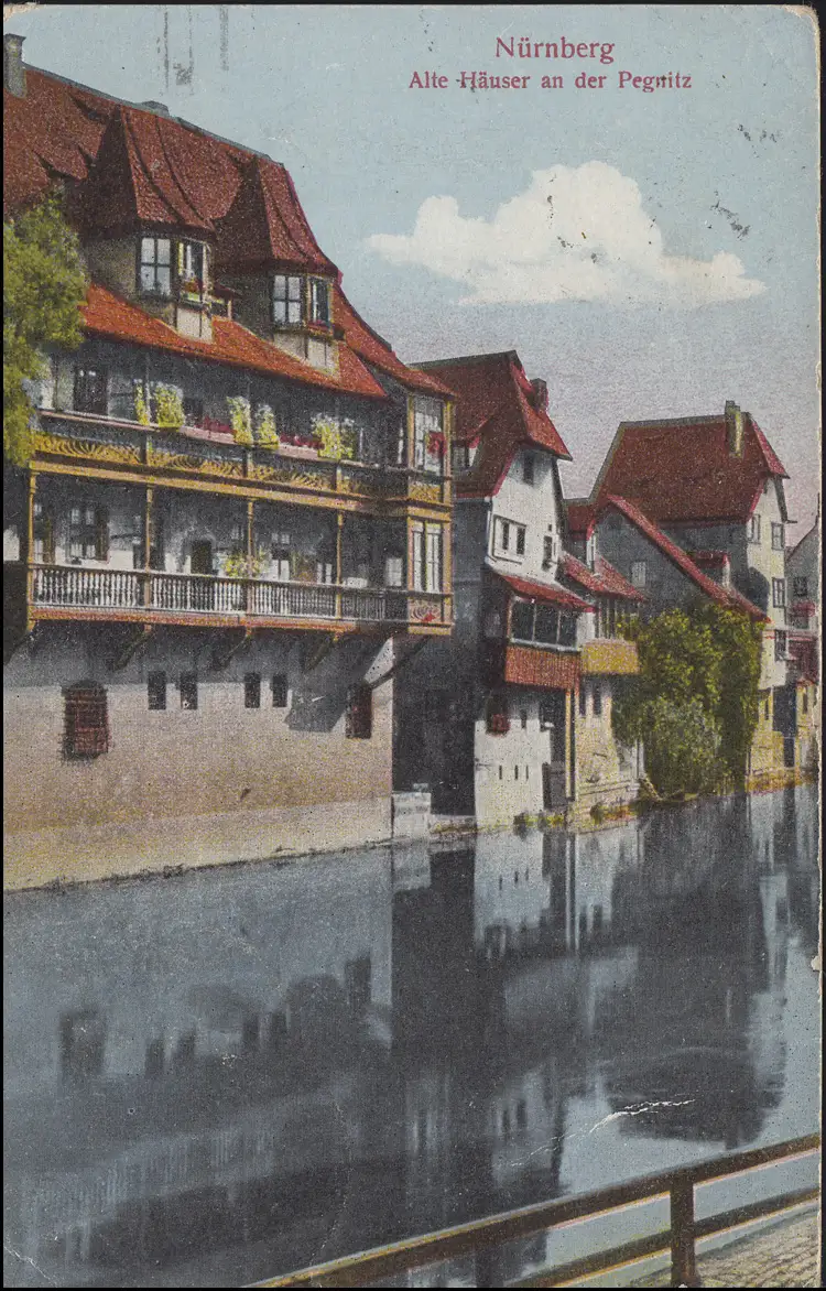 Carte de vue de la Bavière NÜRNBERG Anciennes maisons sur la Pegnitz 14.8.26 en Suisse