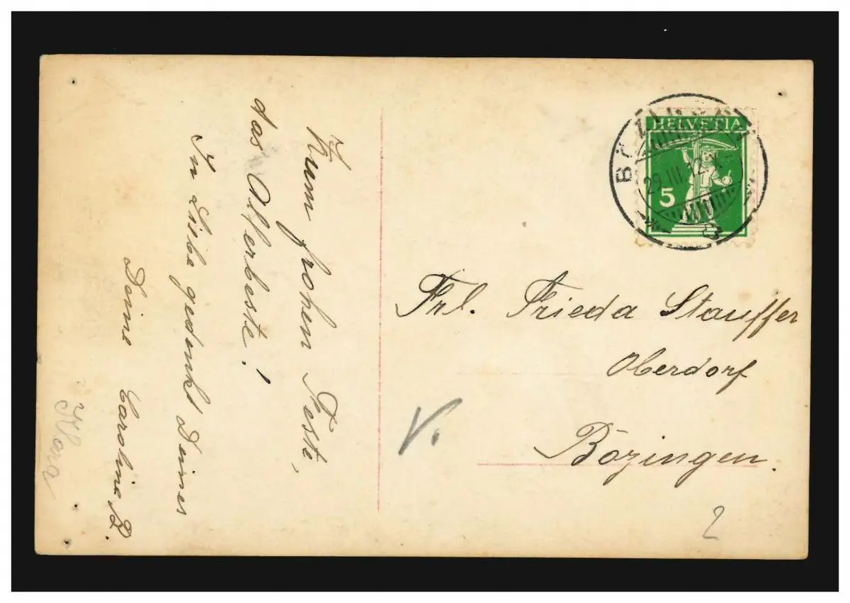 Carte de vue enfants Anniversaire de fille avec des fleurs, BÖZINGEN 29.3.1912