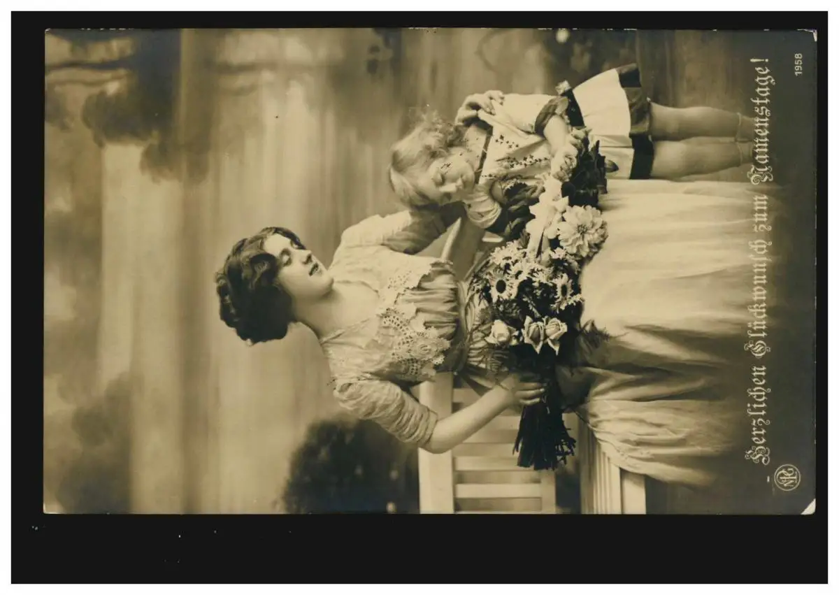 Carte de vue photos Nom de la femme avec fille et fleurs, STOMMELL 21.7.1912