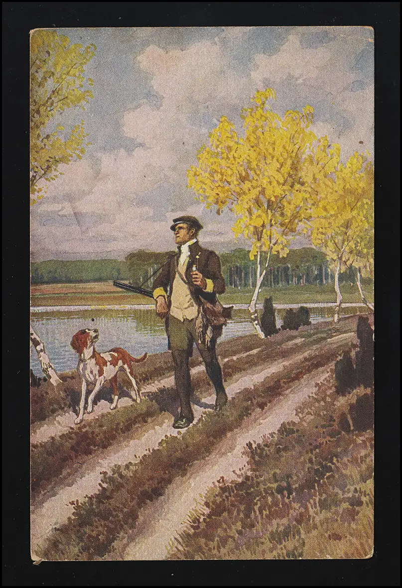 Carte de l'Association pour l 'allemand à l\'étranger, motif de la carte des chansons populaires no 13 de Paul Hey est la chanson " Dans la forêt et sur la lande ." Un chasseur accompagné de son chien de chasse qui passe par un chemin de bruyère avec des bouleaux fleurissants, accrochant le fusil sur lÂ'épaule. Examen: original Référence de produit: 00000000038327>p>Remarque: Cet article n\ est disponible qu\\ \$une fois. Vous recevrez exactement lâ article représenté.