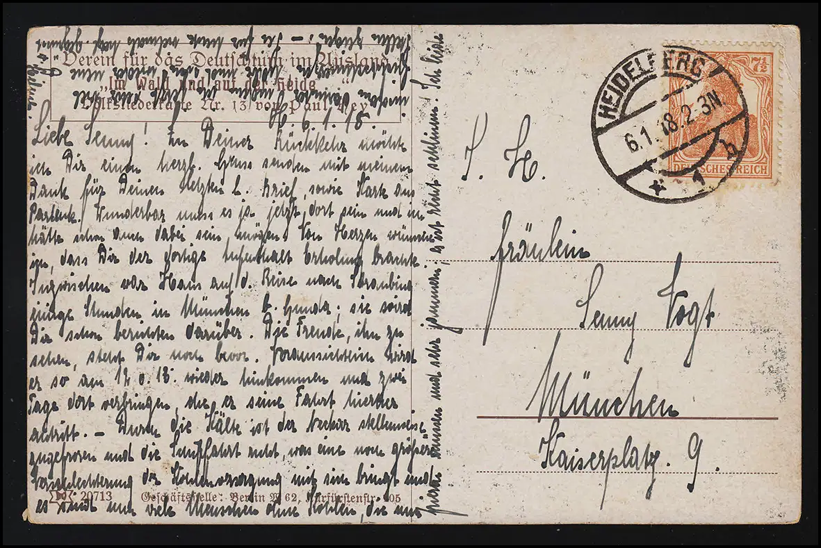Carte des chansons populaires n° 13 Paul Hey, "Dans la forêt et dans la bruyère" Heidelberg 6.1.18