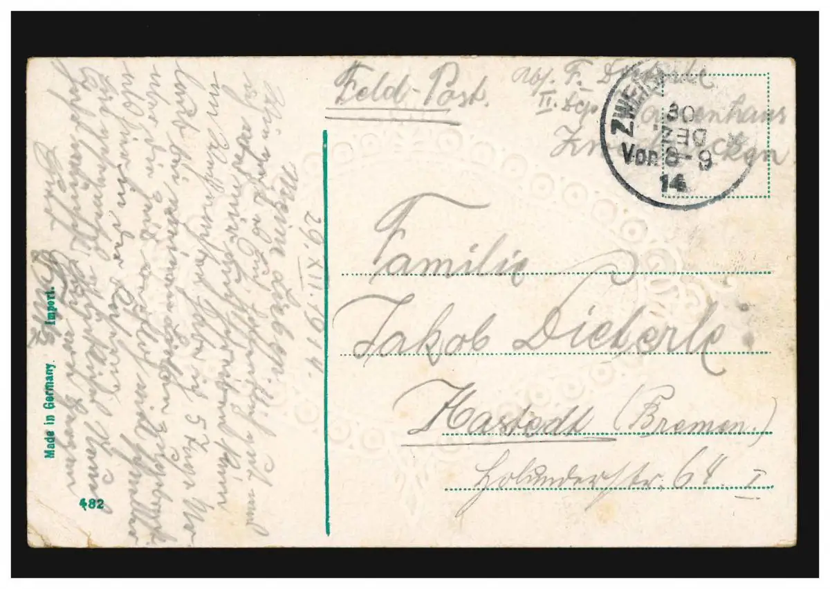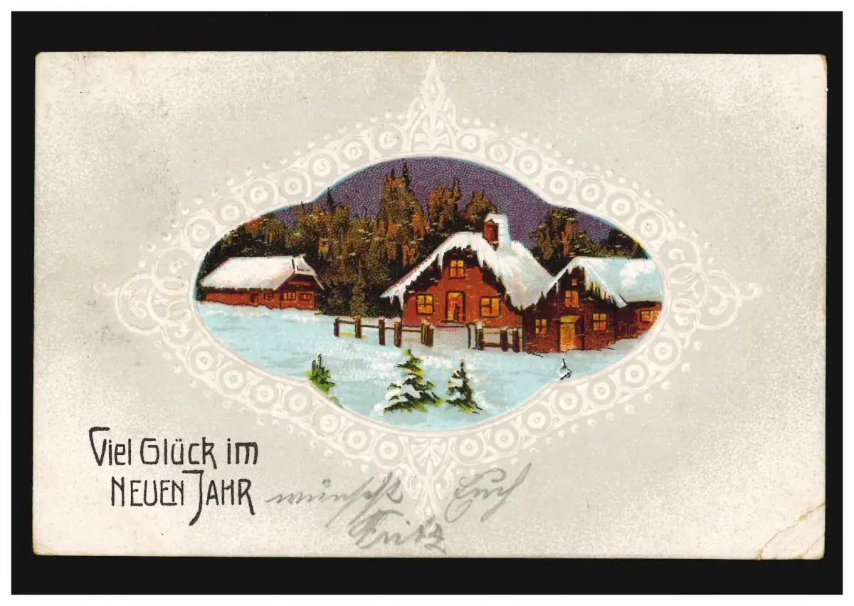 Carte du Nouvel An Village en hiver de nuit, comme un poste de terrain ZWEINZÜREN 30.12.1914
