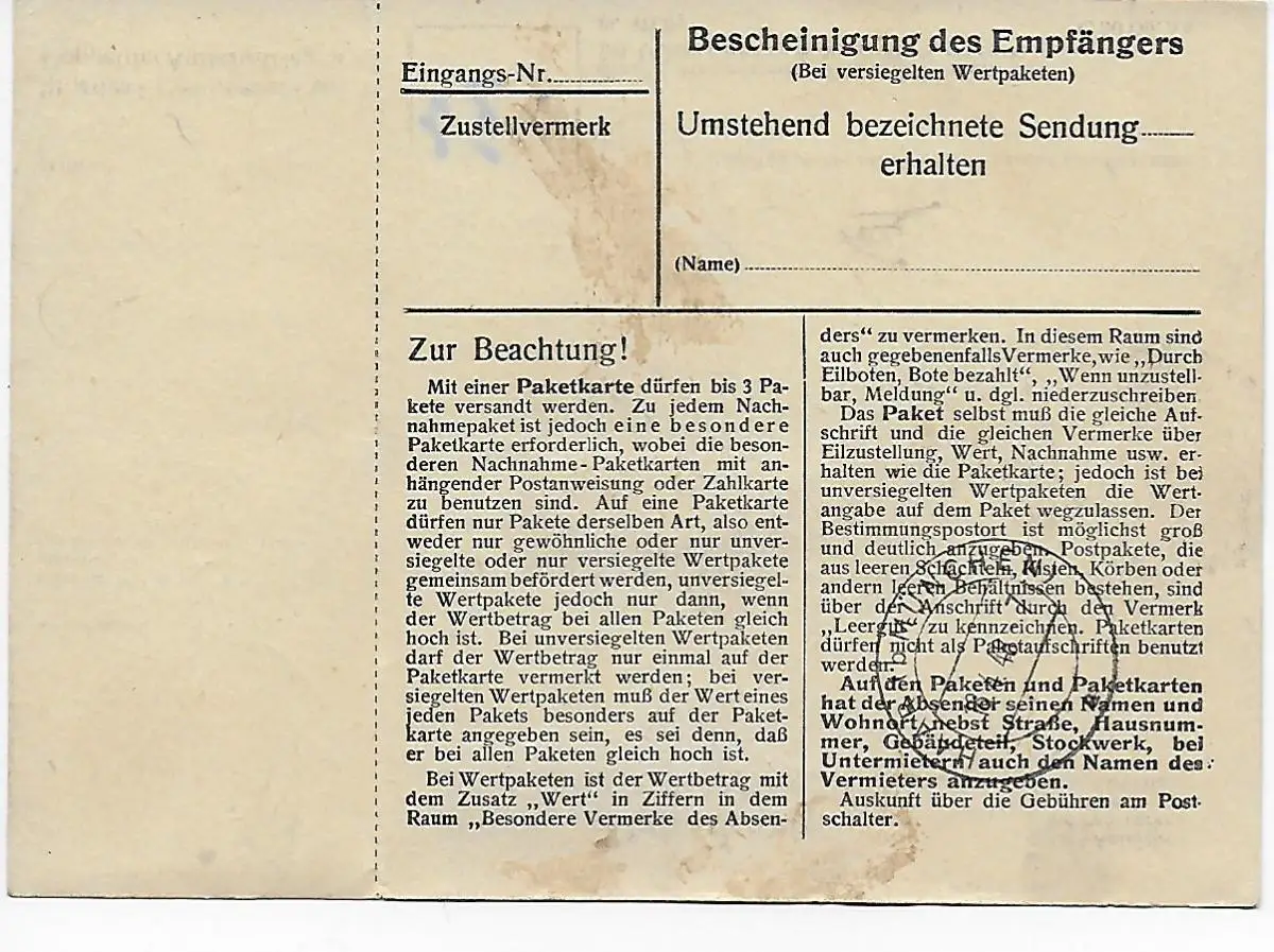 Carte paquet Eilboten Passau vers Munich-Haar, 1948, MeF