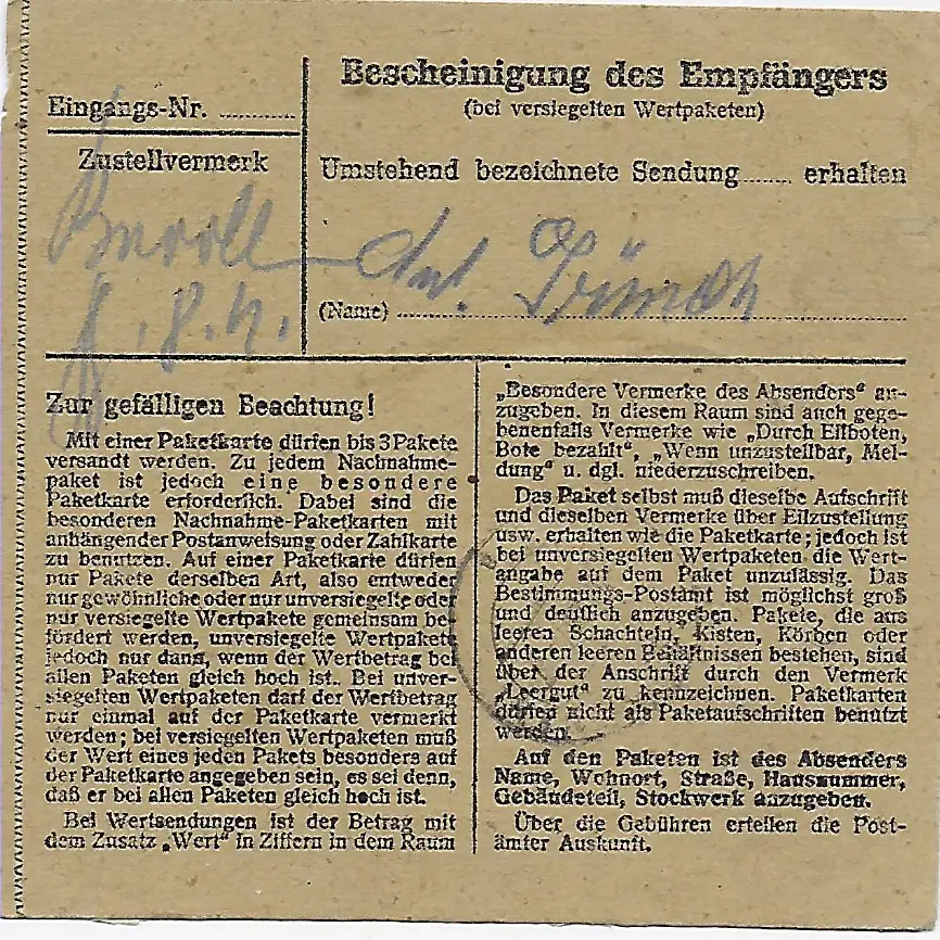Carte paquet Eilboten Stuttgart vers Eglfing, Heilanstalt 1947, MeF