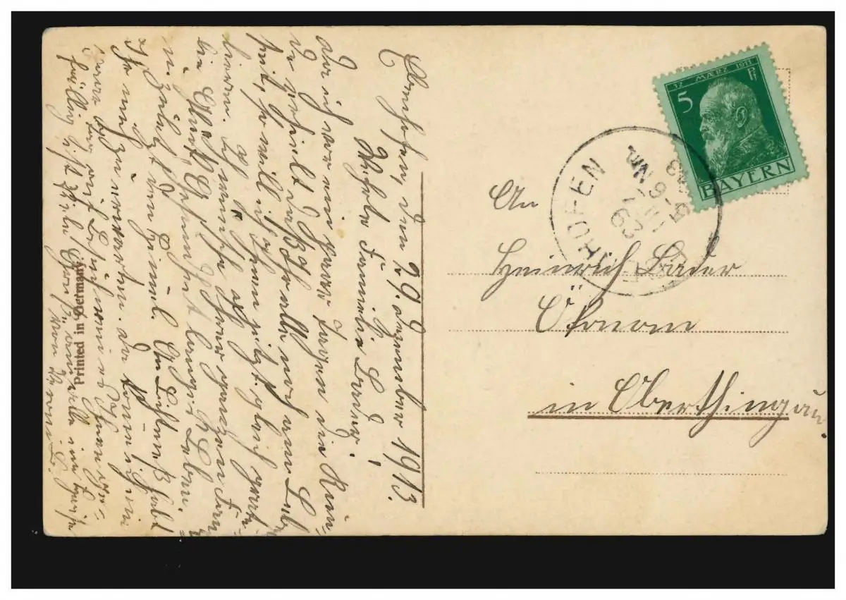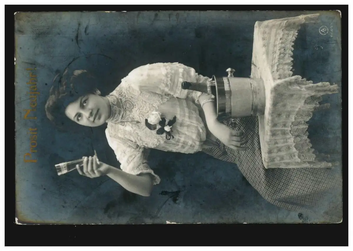 Carte photo de la nouvelle année femme avec verre mousseux, Ebenhofen 29.12.1913