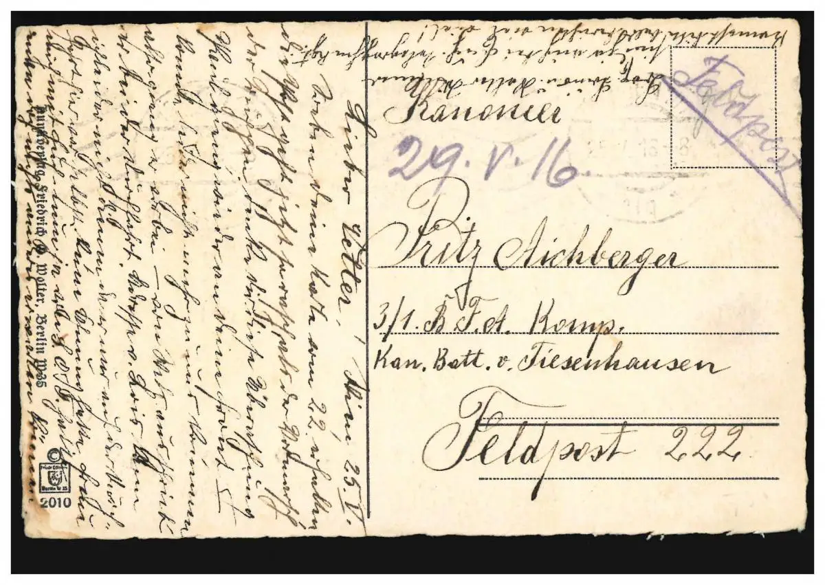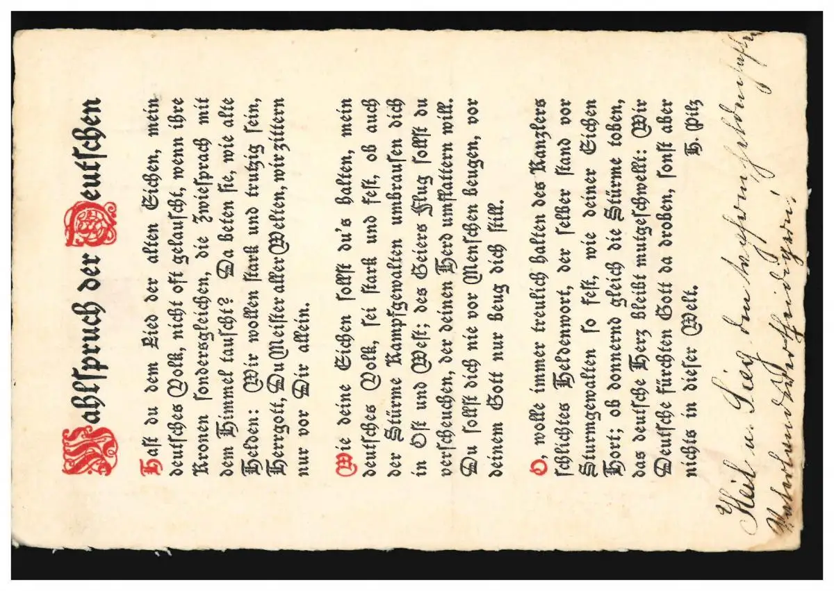 Carte poétique prononçant la devise allemande, Feldpost Batl. von Fiesenhausen 25.5.16