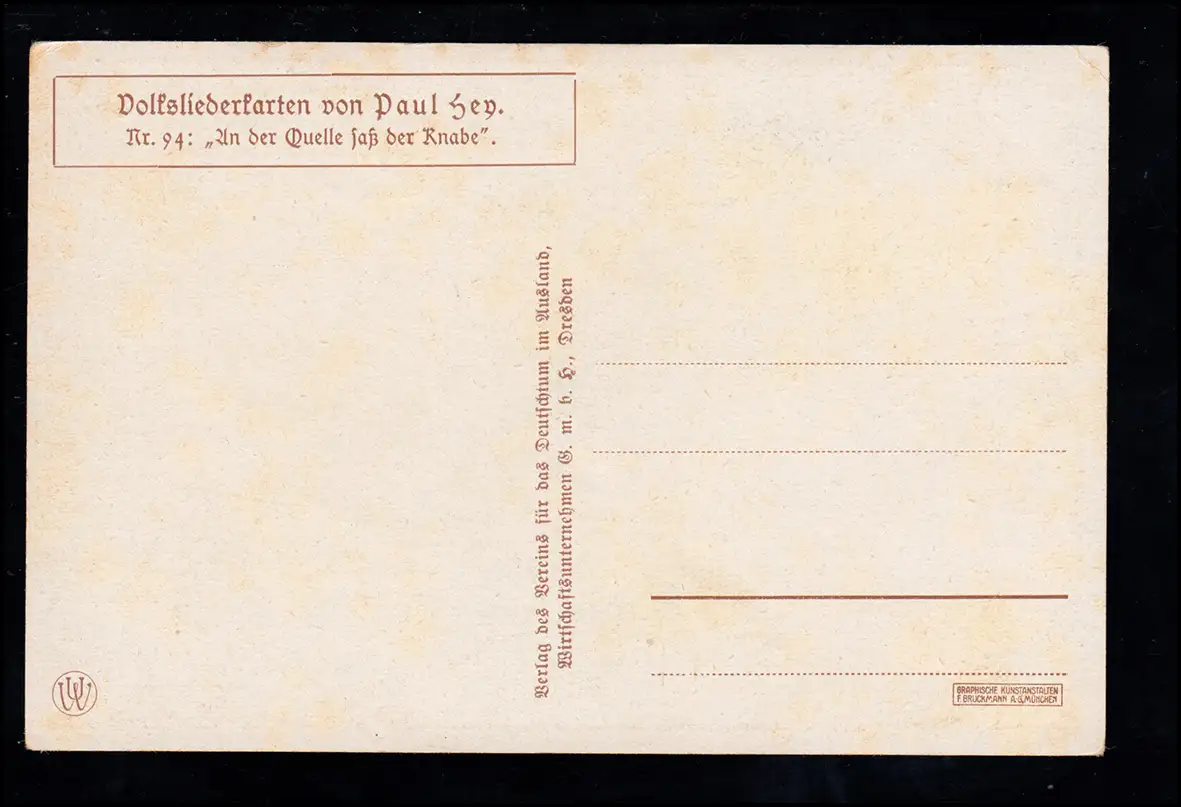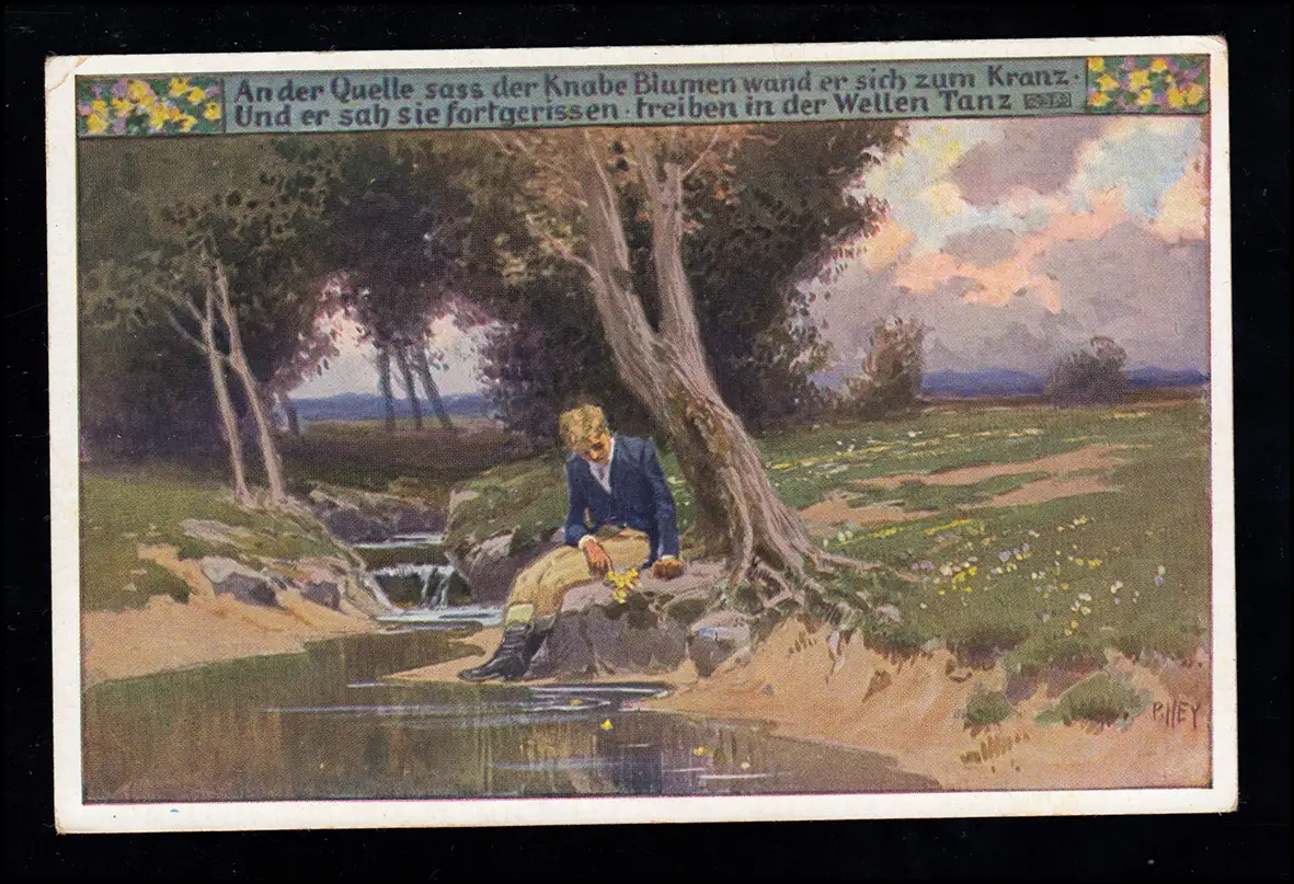 Carte populaire de poésie AK Paul Hey: A la source, le garçon était assis, inutile