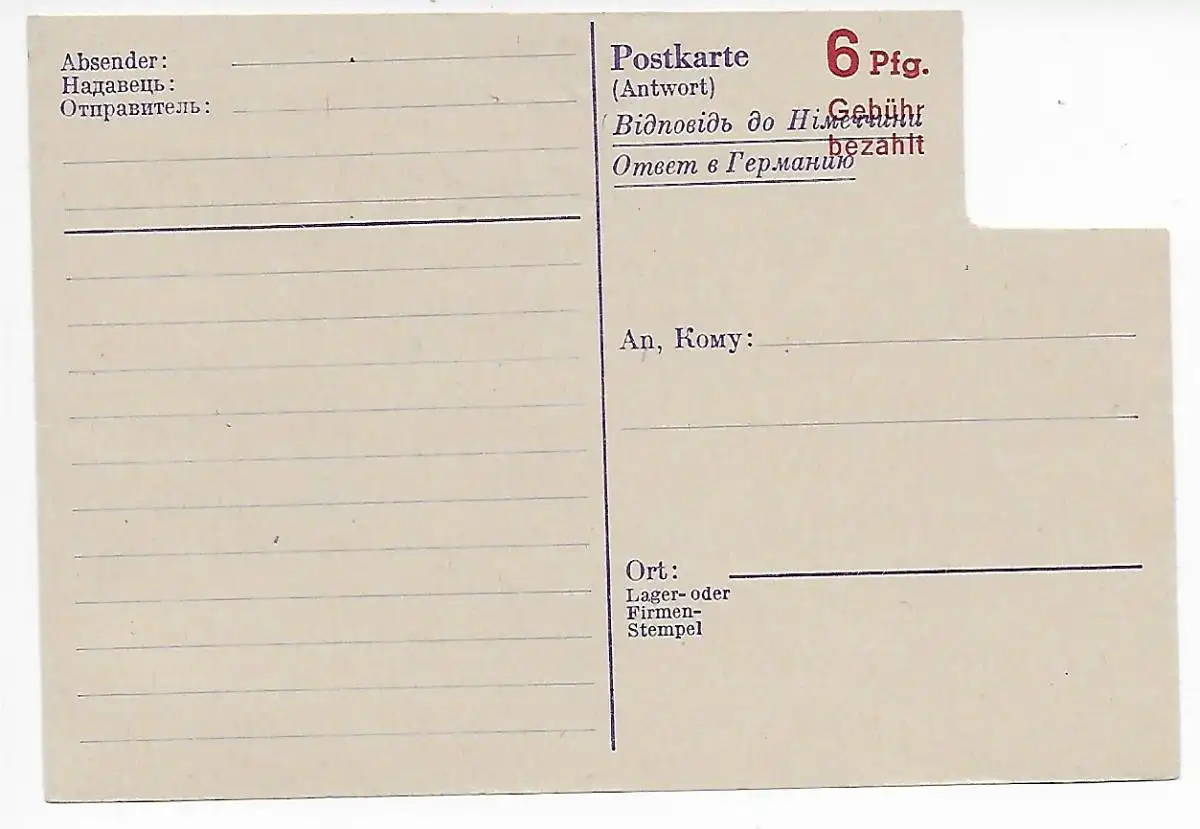 Carte postale 6 Rpfg, Mi Nr. 375, blanc