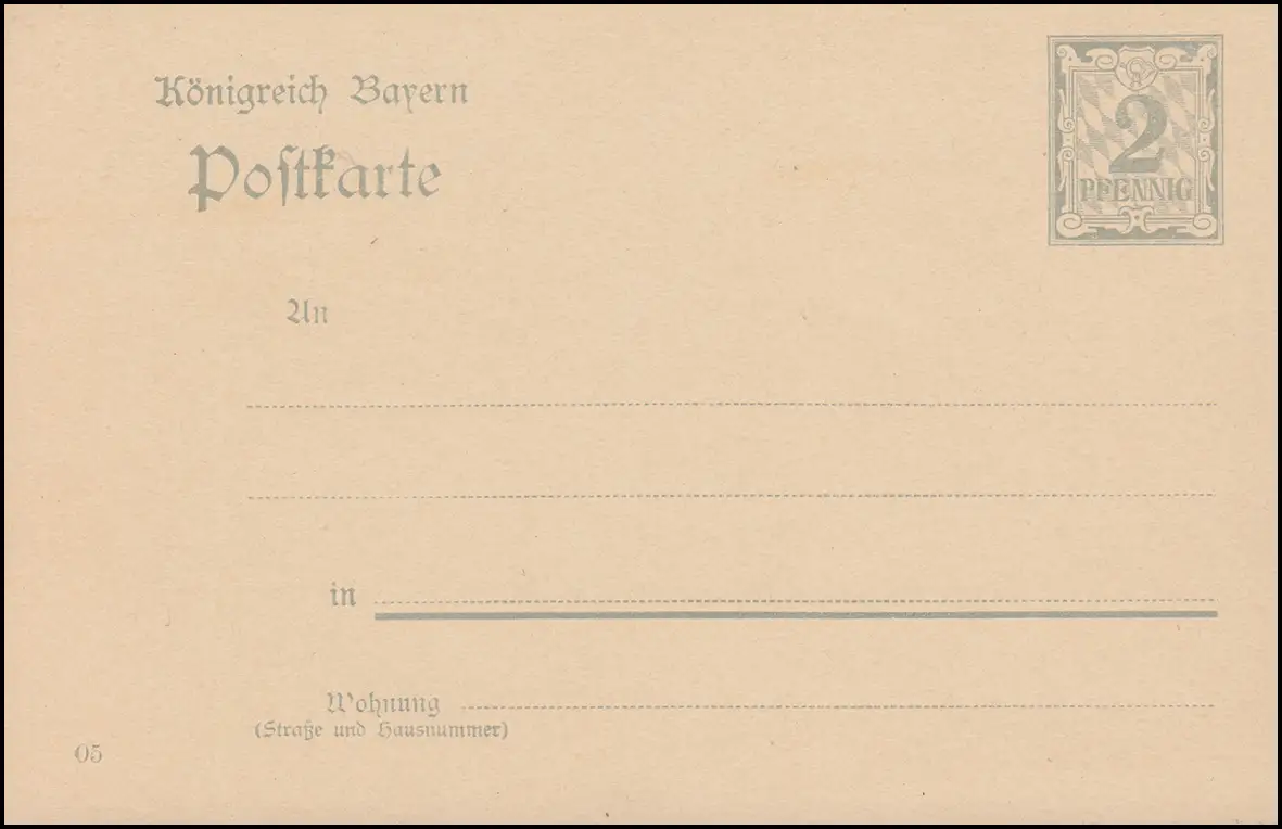 Carte postale Bayern P 65/03 chiffre 2 Pf gris, sans Wz., DV 05, tel qu'il est dépensé **