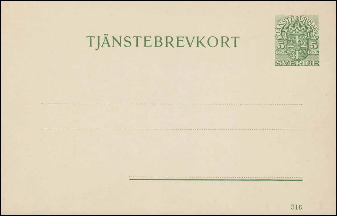 Carte postale DP 8 Tjänstebrevkort 5 Öre Date d'impression 316, ** frais de port