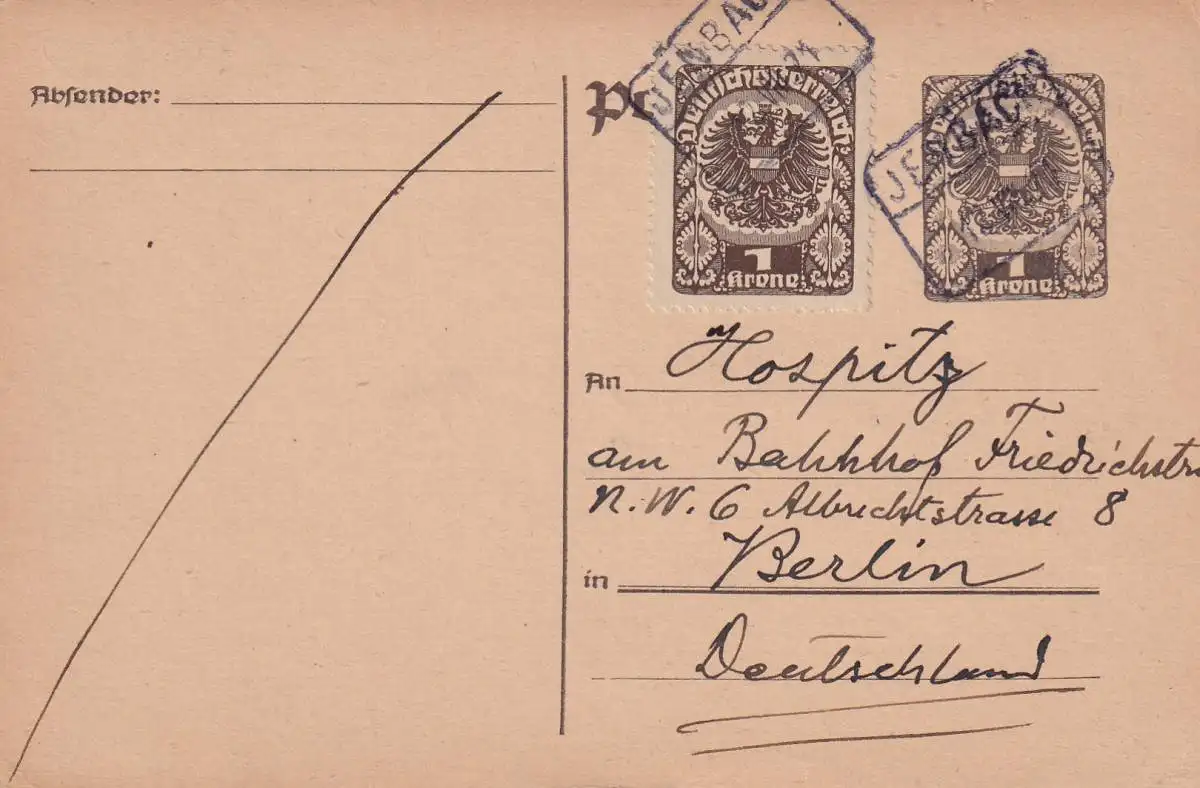 Carte postale Inflation 1921 Jenbach/Tirol, Bahnhofsbriefskasse vers Berlin