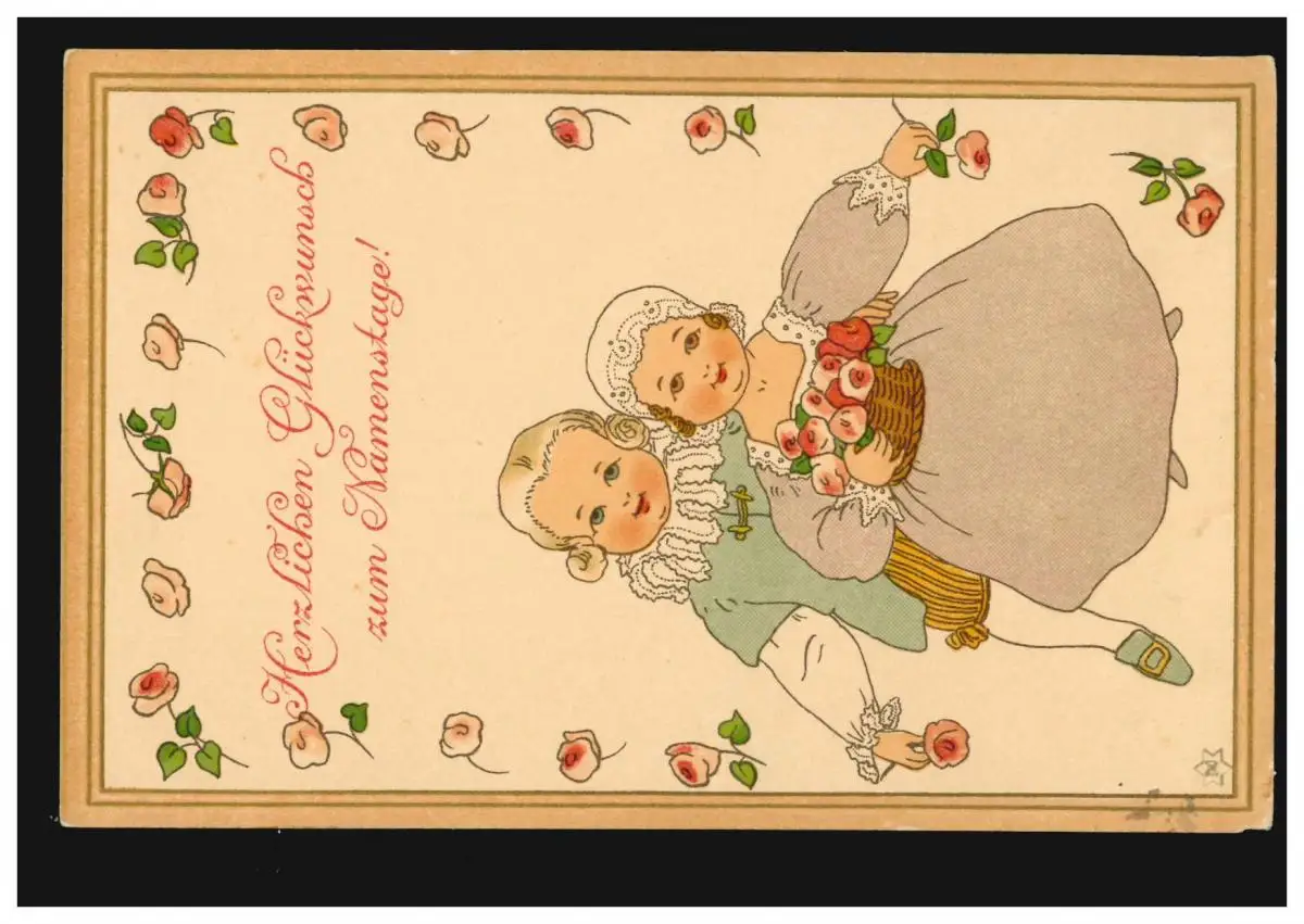 Carte postale Jour du nom Enfants en robes baroques avec fleurs, inutilisé