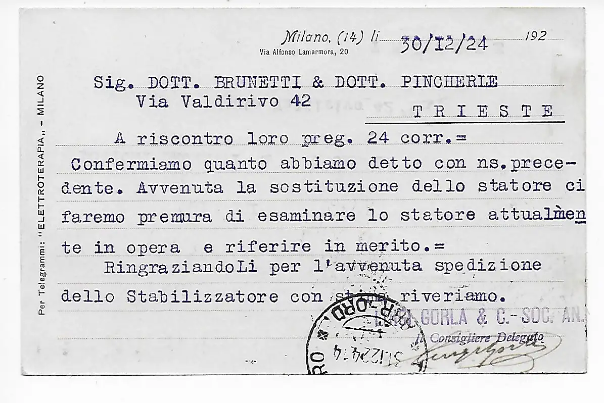 Carte postale Milano 1924 par Trieste, carte publicitaire, timbre publicitaire