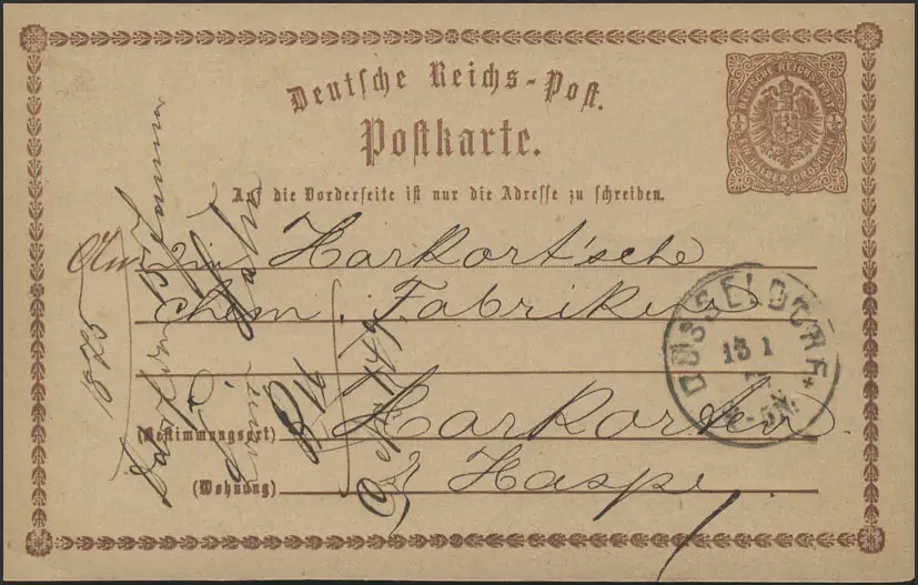 Carte postale P 1 Aigle en grande ellipse 1/2 deniers, DUSSELDORF 13.1.75