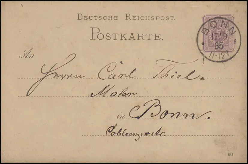 Carte postale P 12/02A, chiffre 5 pfennig, DV 885, carte postale locale BONN 17.9.85