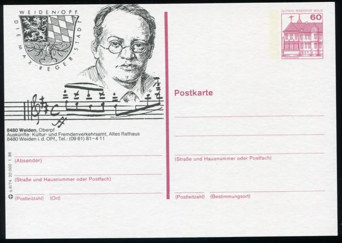 Carte postale P 126c BuS 60 Pf Päden: Armoiries de ville & Max Reger, numéro q 6/74 **