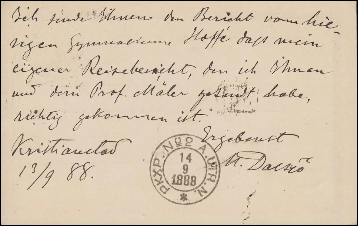 cachet clair au verso du poste "PKXP No.2 A.UTR.N. 14.9.1888" Numéro de catalogue: P13 Vérification: original Référence produit: 00000000027203