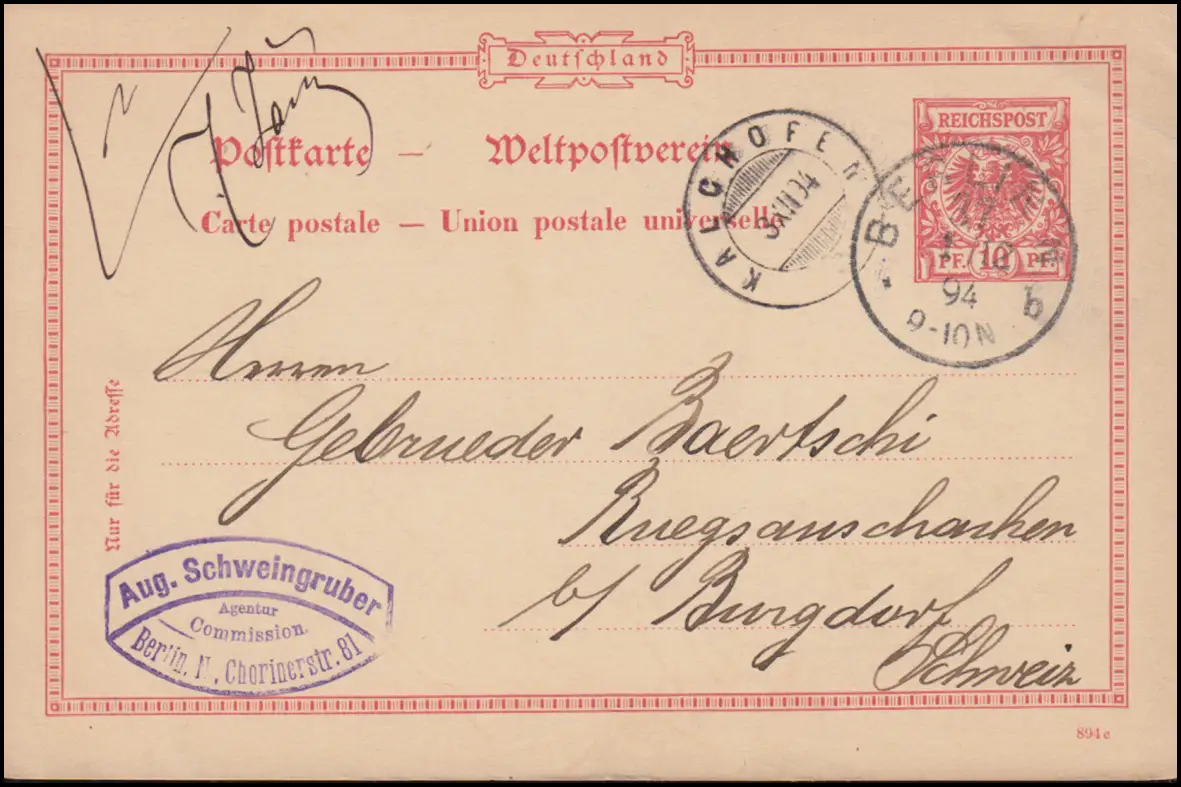 Carte postale P 25/01 avec DV 894c de BERLIN 37 - 1.12.1894 vers KALCHOFEN 3.12.94