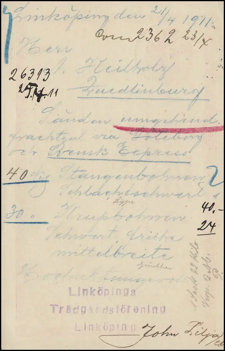 du Gartenverein LINKÖPINGS TREDGARDSFÖRENING vers l'Allemagne: Commande de haricots Numéro de catalogue: P25 Examen: original Référence produit: 00000000022780>p>Remarque: Cet article n'est disponible qu'une seule fois. Vous recevrez exactement l 'article représenté.