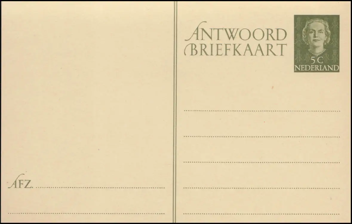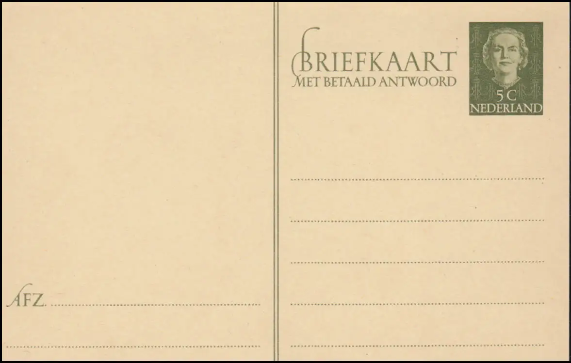 Carte postale P 251 Reine Juliane Carte double 5 cents, non utilisée ** / MNH