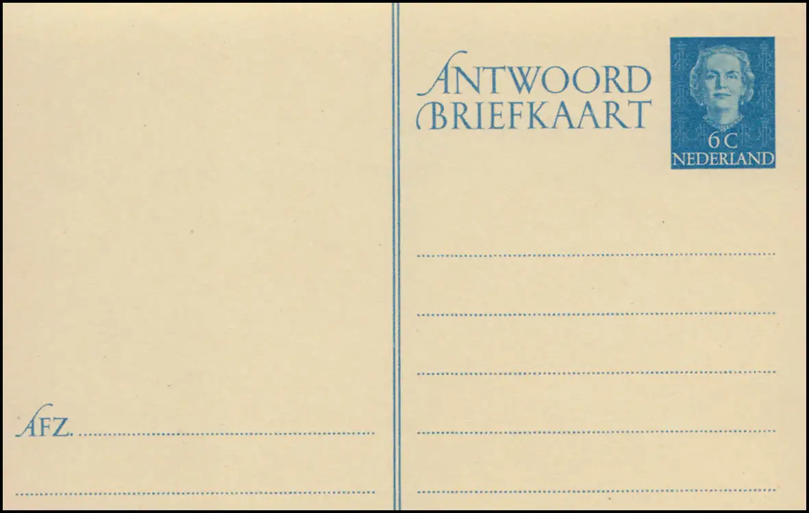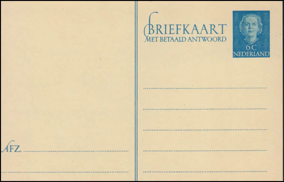 Carte postale P 252 Reine Juliane Carte double 6 cents, non utilisée ** / MNH