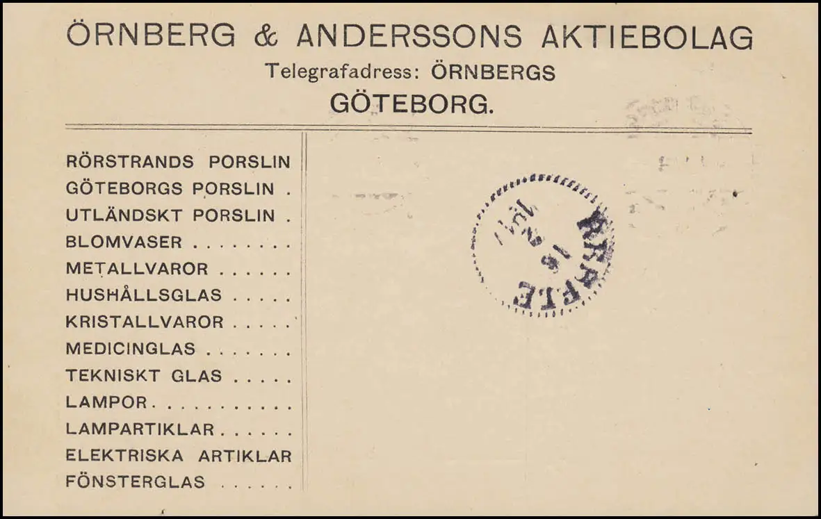 Carte de commande de la société Örnberg & Andersson Aktienbolag / Variantes de verre Numéro de catalogue: P32 Examen: original Référence produit: 0000000002698>p>Remarque: Cet article n'est disponible qu'une seule fois. Vous recevrez exactement l'article représenté.