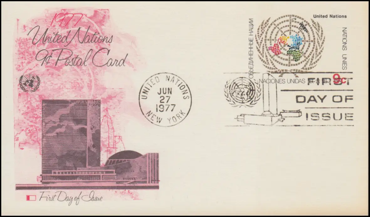 Carte postale P 7 de l'ONU sous le nom de FDC 27.6.1977 impression de bijoux privés