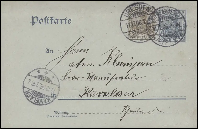 Carte postale P 70X Germania 3+2 Pf. DRESDEN-ALTVADT 27b - 11.12.06 vers KEVELAER