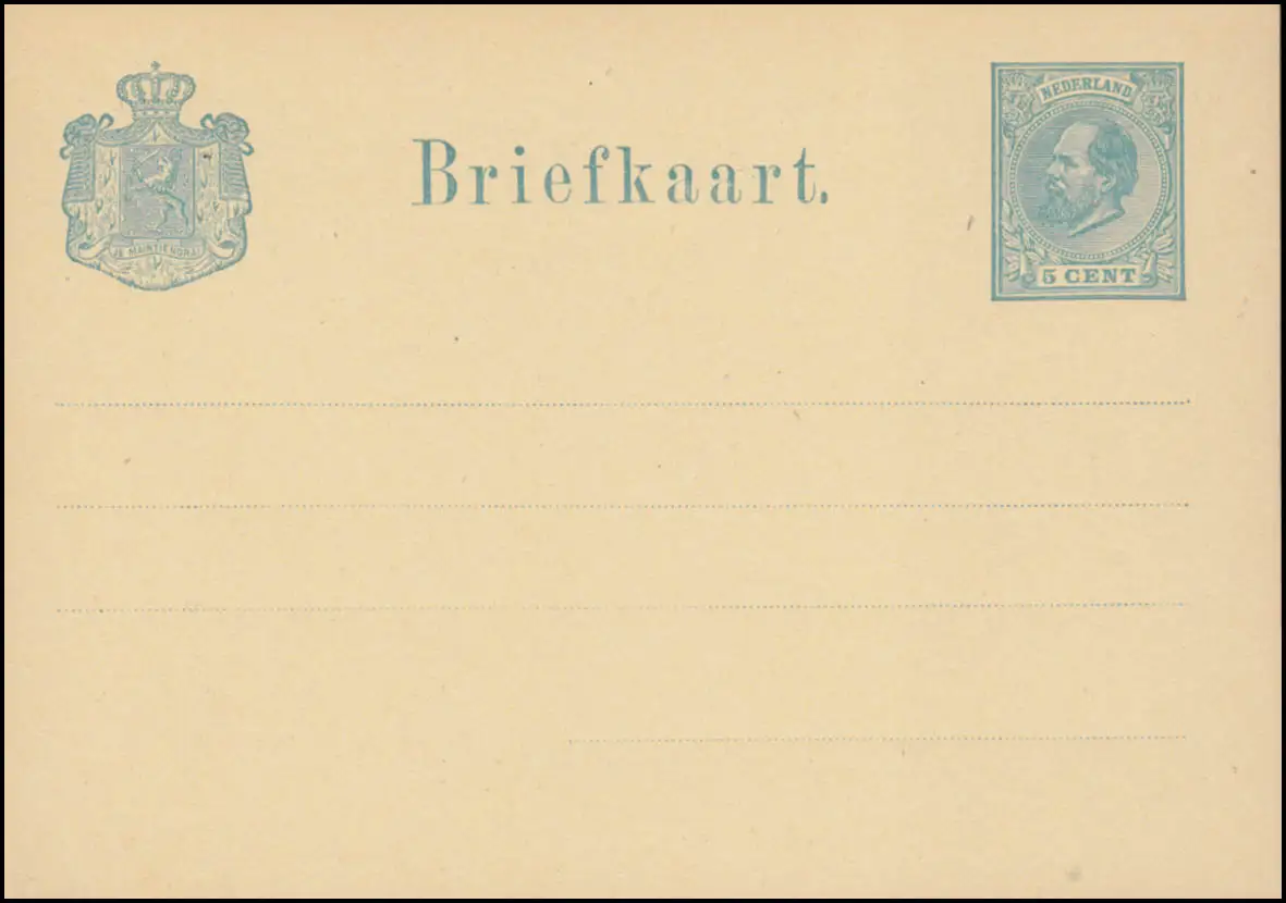 Carte postale P 9 Roi Guillaume 5 C. bleu, non utilisé ** / MNH