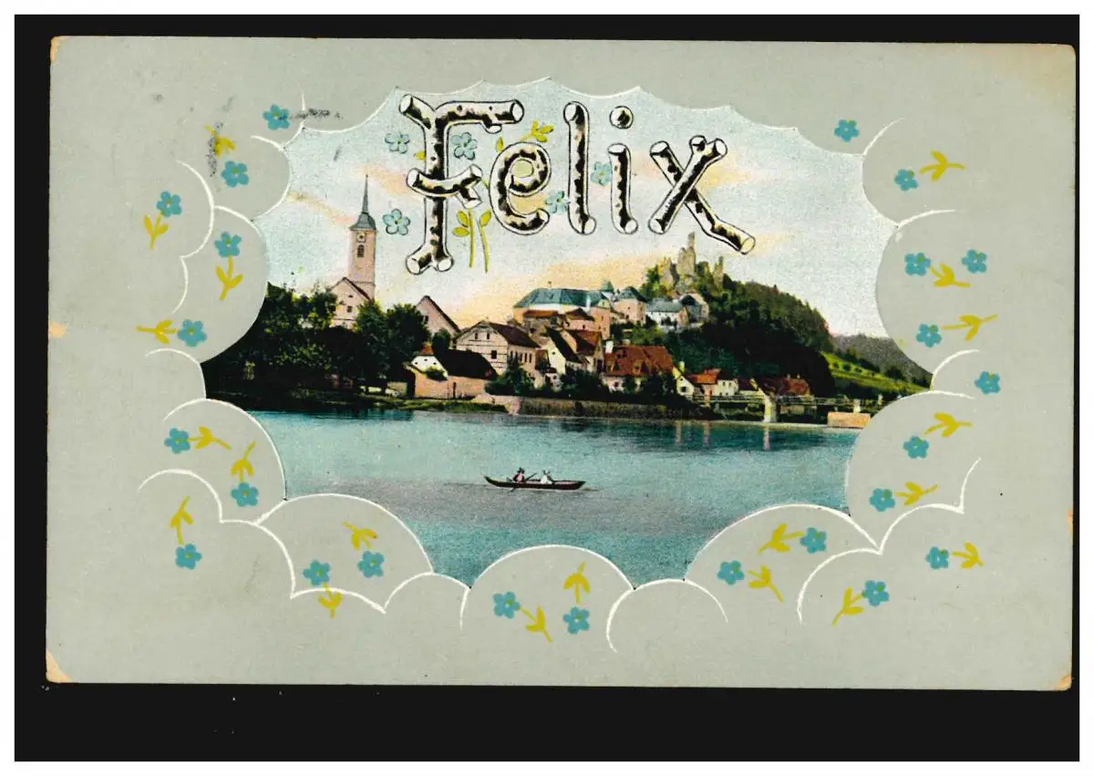 Carte postale Prénoms: Felix, Paysage avec bateau à rames, BUTS DE WOLL 25.6.1907