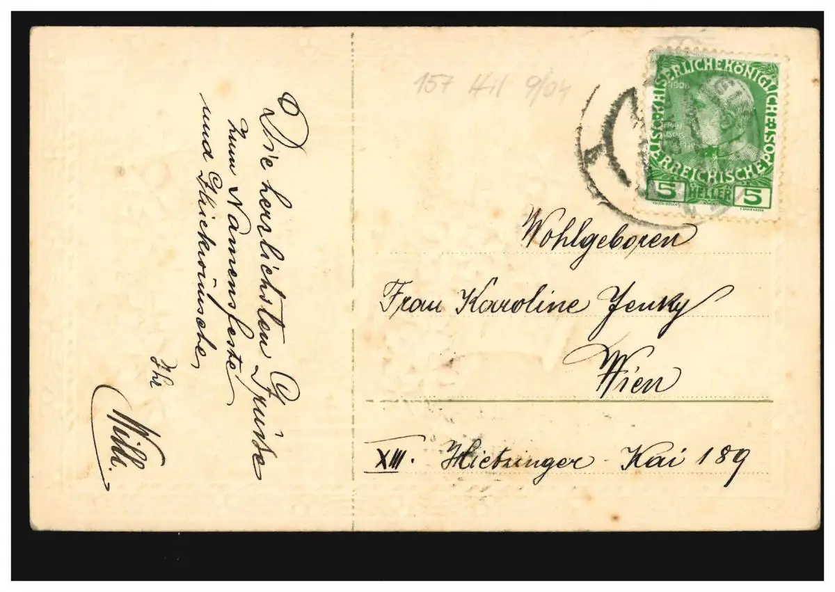 Carte postale Prénoms: Haute Caroline! Violen corbeille, couru vers 1910 à Vienne