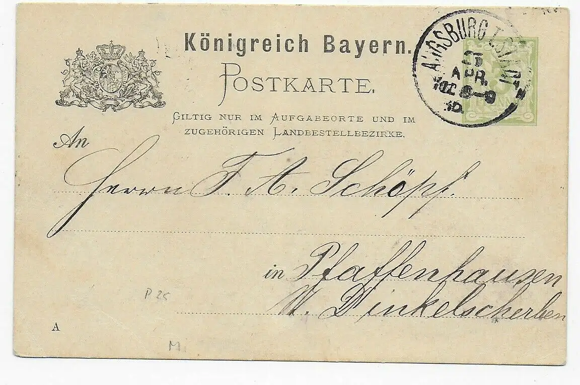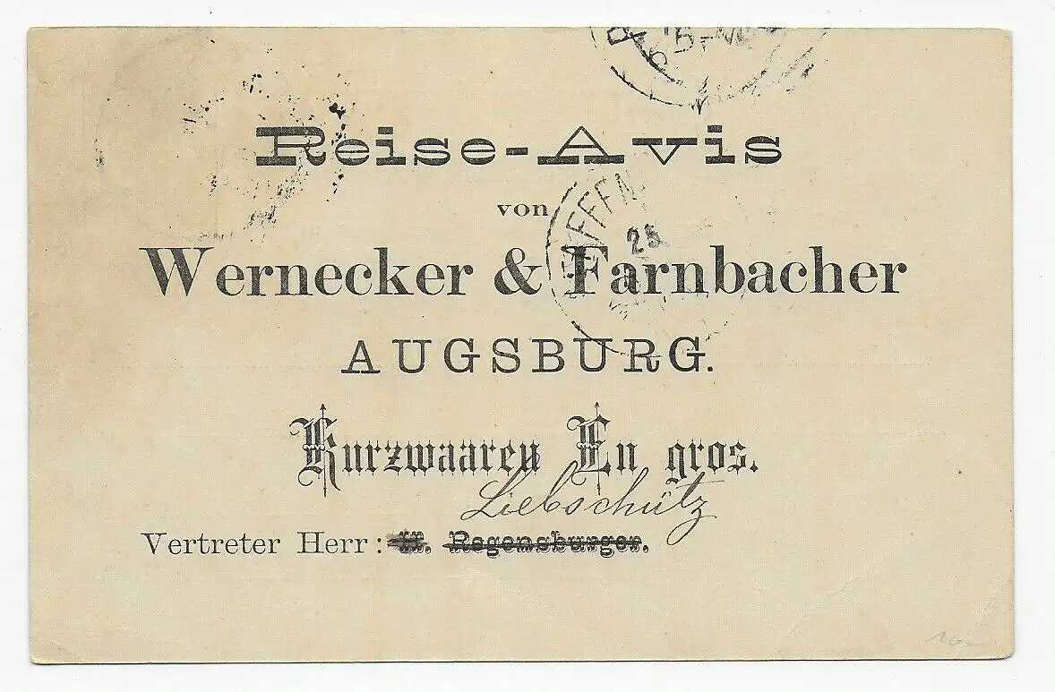 Carte postale avec publicité Articles courts de Augsbourg à Pfaffenhausen, 1910
