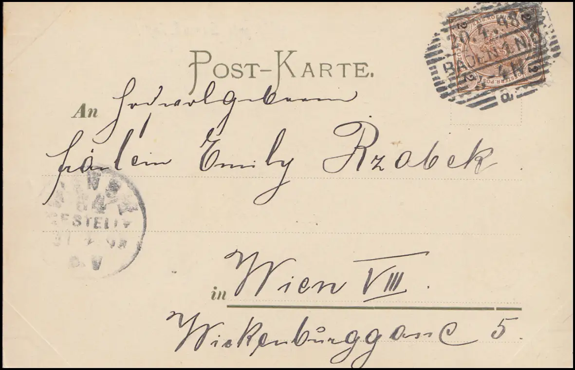 Carte postale d'artiste En bonne amitié! Rost-O BADE 20.4.1898 vers VIENNE 31.4.
