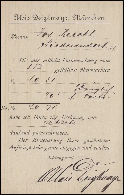 via OBERAUDORF 15.5.85, expéditeur: Alois Deiglmayr Contrôle: original Numéro d'article: 00000000004594