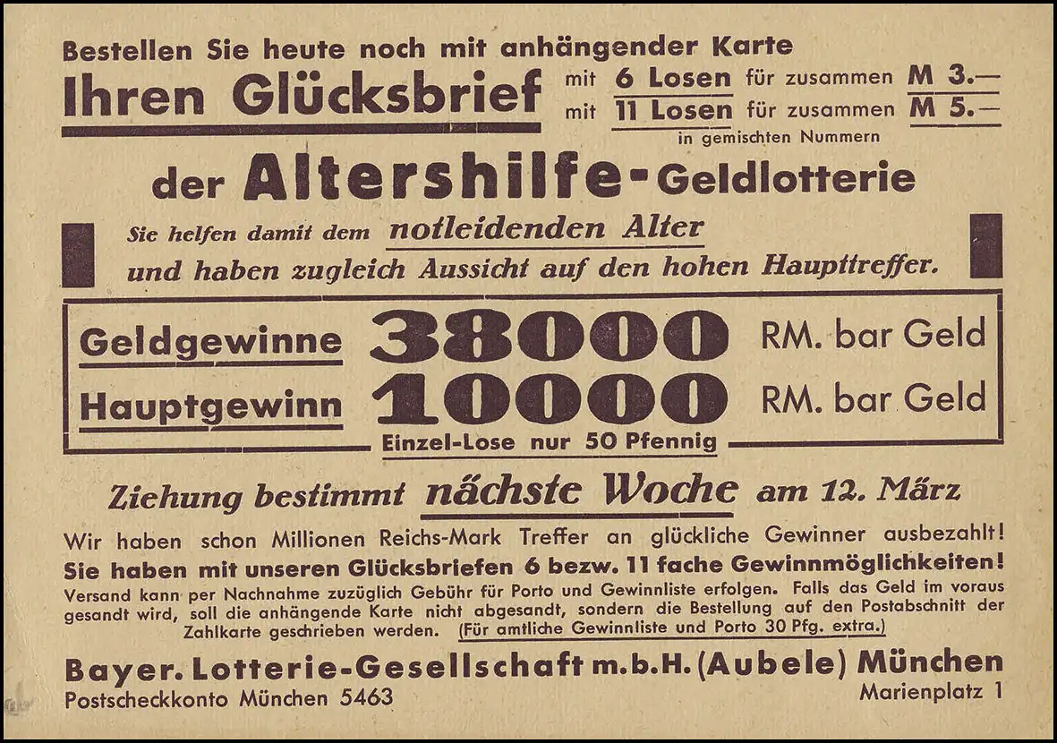 Bayer. Loterie-Gesellschaft München, Lotto Numéro de catalogue: 410 Examen: original Référence produit: 00000000047063