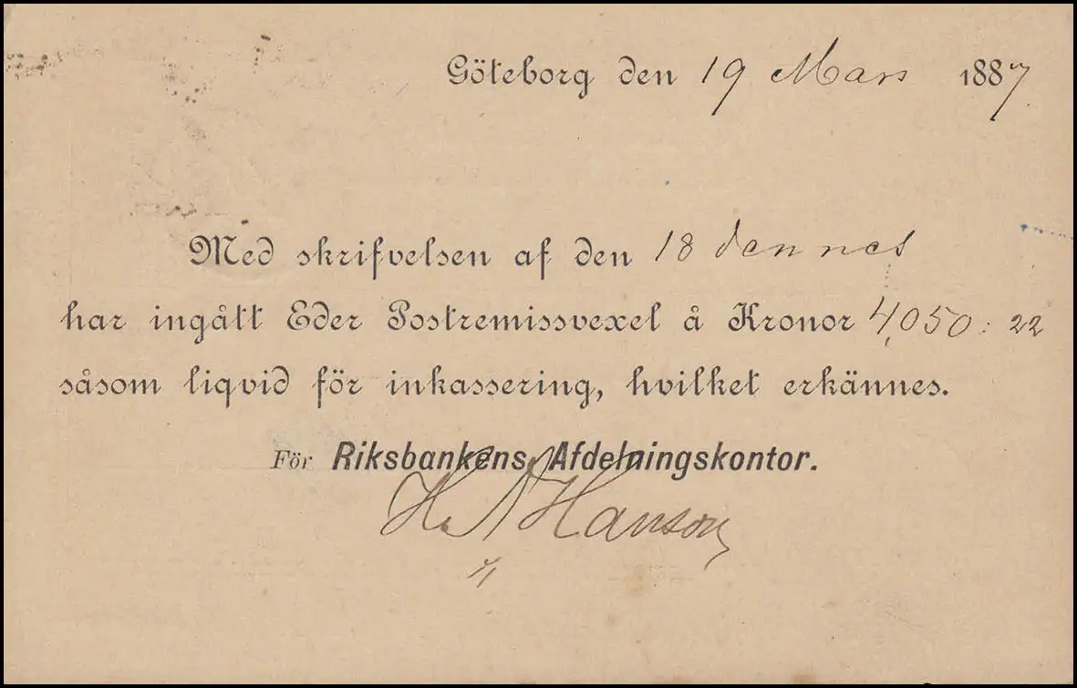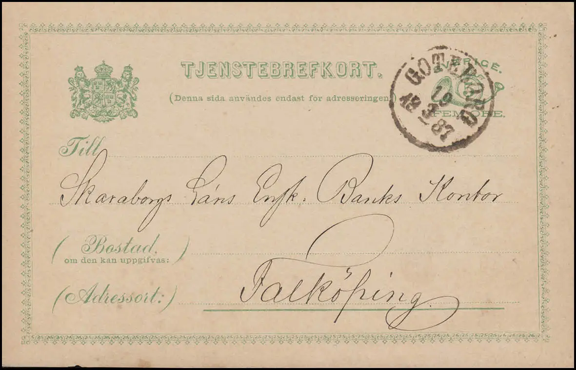 Carte postale de service DP 6II Tjänstebrevkort 5 Öre sans date d'impression GÖTEBORG 19.3.1887