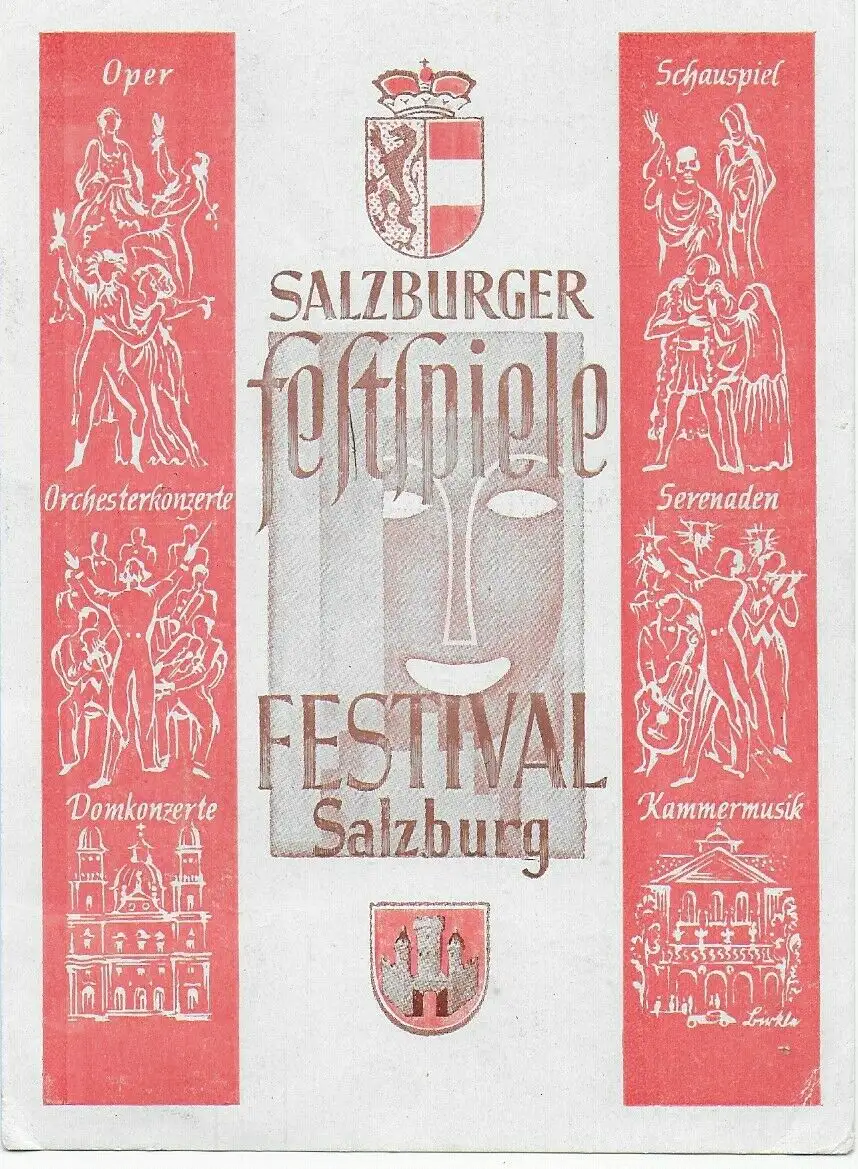 Carte postale des Festivals de Salzbourg en 1947 en Allemagne avec 2x timbre de censure