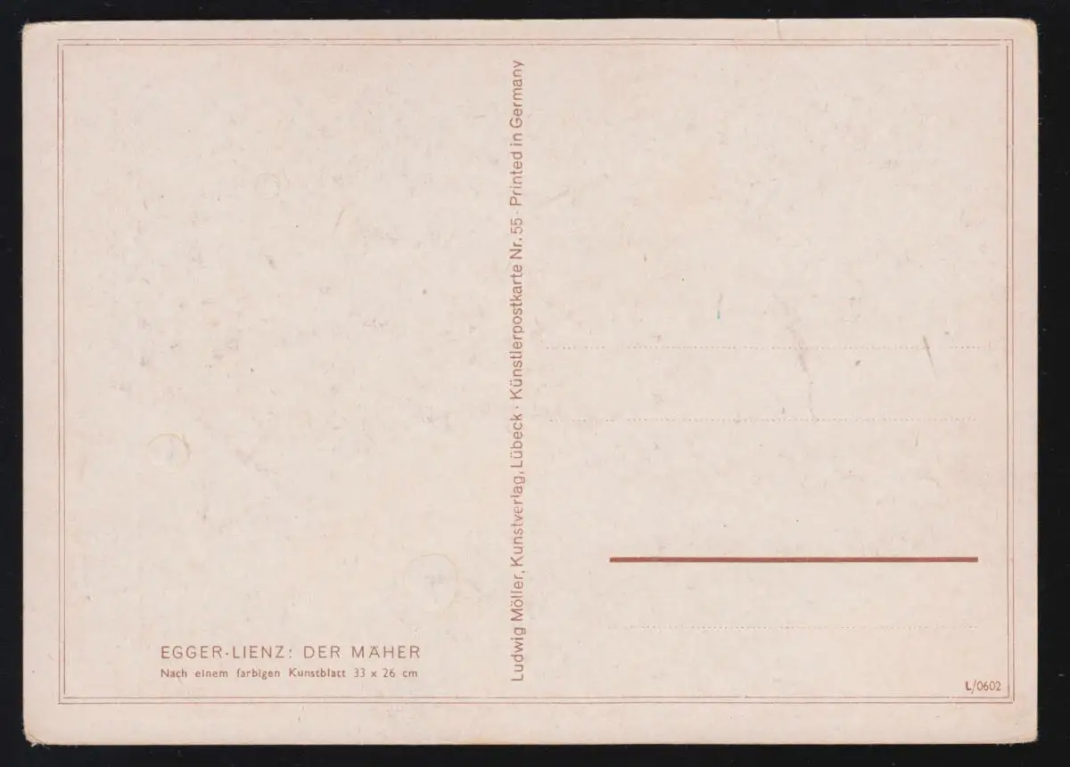 Carte postale des artistes 55: Egger-Lien: La moissonneuse, inutilisé