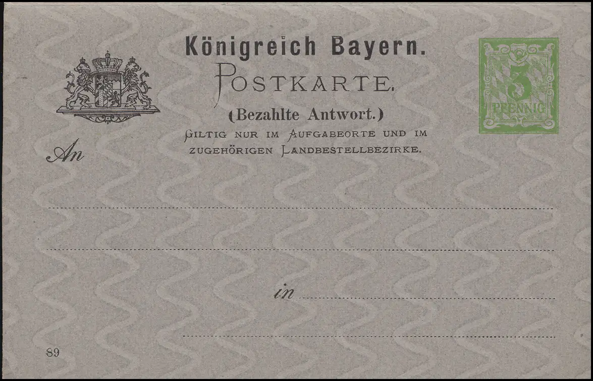 Carte postale double P 35 chiffre 3/3 Pf DV 89 Wz. x, vert clair / gris, non utilisé **