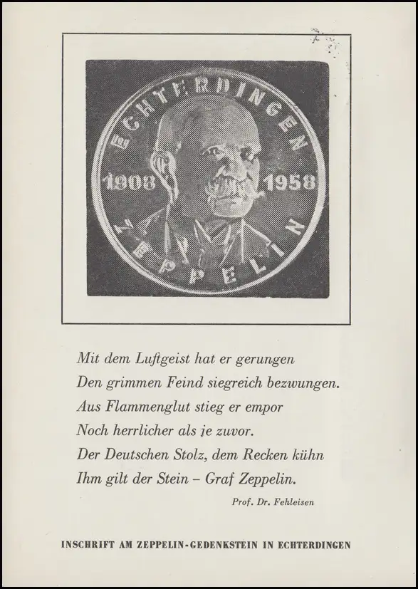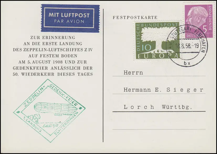 Carte postale fixe Zeppelin-Gedenk-Feier 1. atterrissage Echterdingen, Stuttgart 18.8.1958