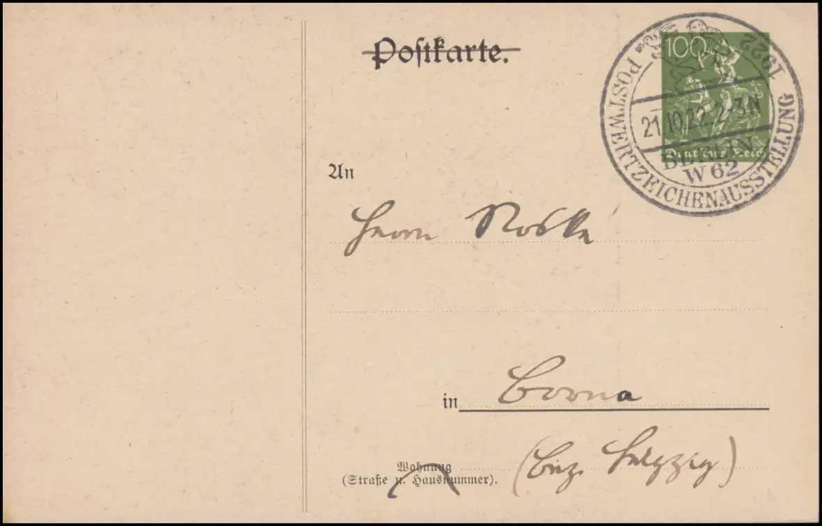 Carte postale privée PP 63 Exposition de la marque postale à Berlin 1922, SSt correspondant