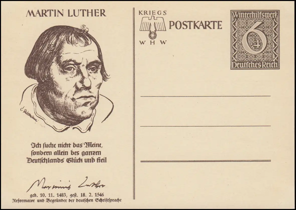 Carte postale spéciale P 285 WHW 1939 - Martin Luther, inutilisé